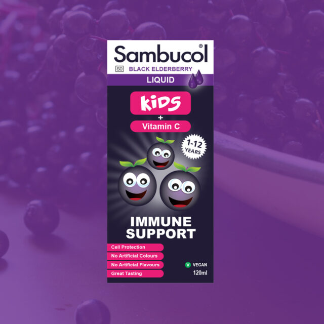 Sambucol® Kids Range offers immune support, protecting against colds and flu in liquid, gummy, and chewable formsKey ingredient: